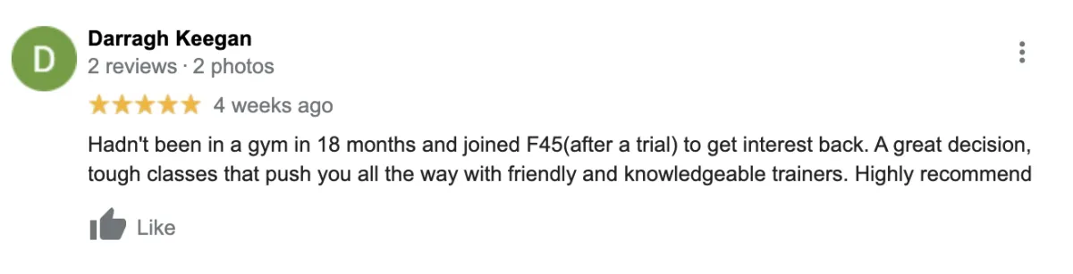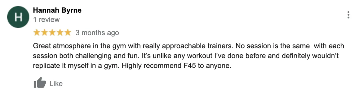 Whatever your level of fitness - whether you're a frequent gym bunny or complete fitness newbie, F45 was designed to get you RESULTS! And you'll leave every visit with a smile on your face!